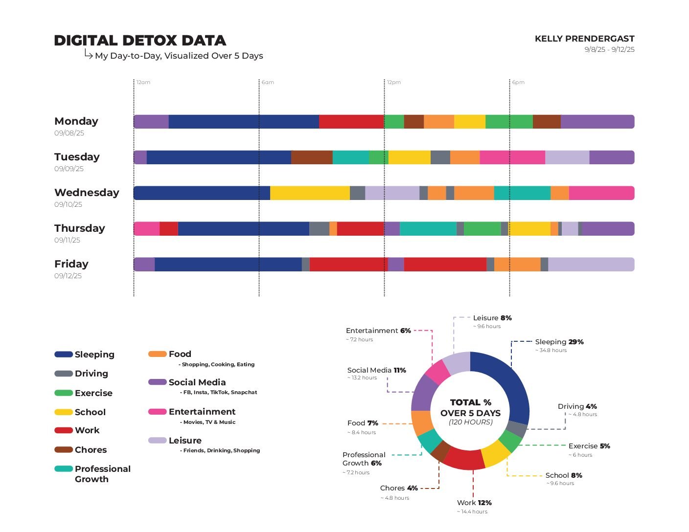 This gave me a clearer picture of my daily habits and where my time is really going. My schedule varies a lot week to week, so it was interesting to see things averaged out.